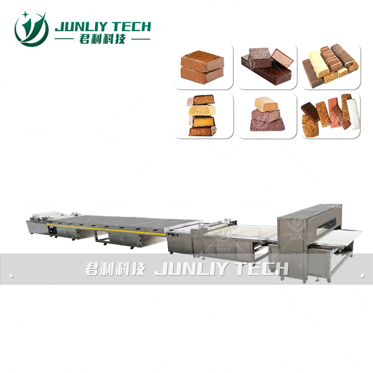 蛋白棒机器适用于生产粘性较大的休闲食品,如营养蛋白棒、能量棒、蛋白棒、坚果棒、雪花酥、牛轧糖等。蛋白棒机器由铺料、压平、冷却、分条切块成型、冷却输送等五部分组成,蛋白棒设备具有操作简单、使用方便、切块成型好、长短可任意调节等优点。